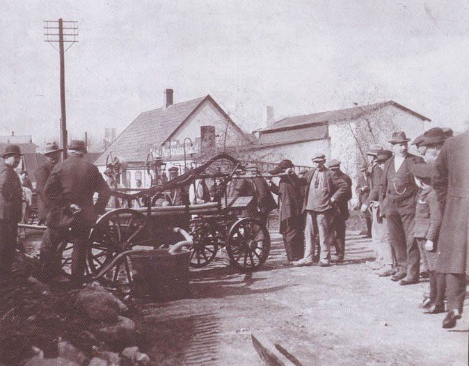 'Var der ildebrand, saa syntes vi Børn der skete noget i Hverdagene! Kirkelokkerne ringede, fra de forskellige Gaarde kom man til Gadekæret for at hente Vand i smaa Tønder, Dagens Mand var "Lille Madsen". Han gik rundt i Byen og blæste i et Horn og raabte hvor det brændte.'