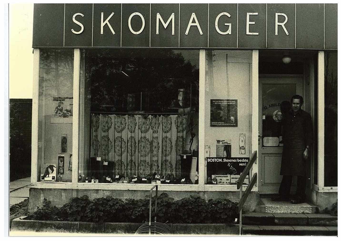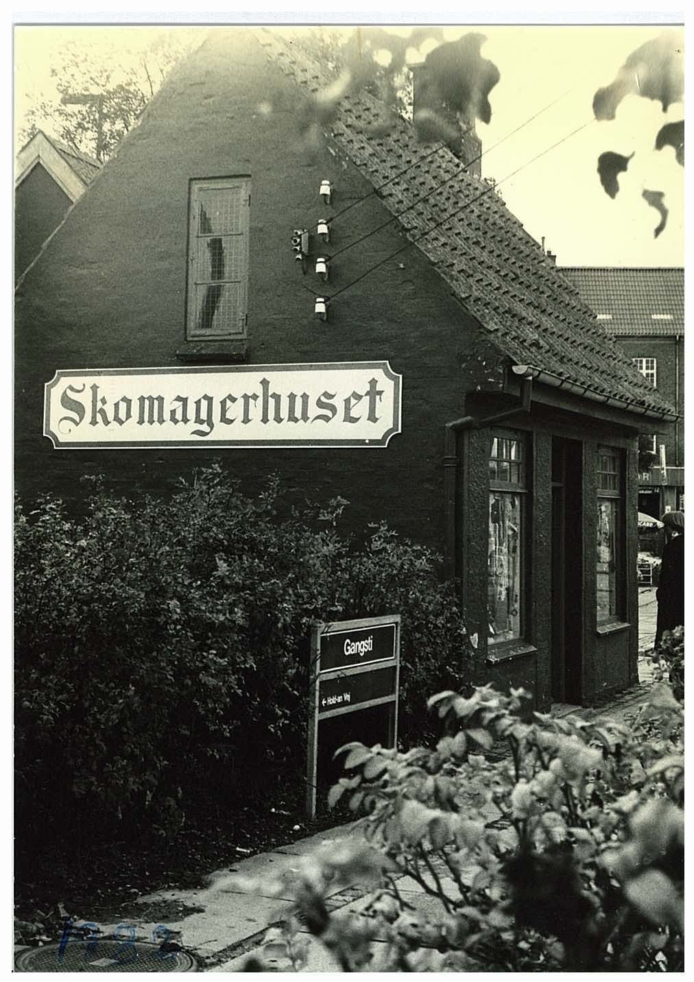 Det lille hus bliver kaldt Skomagerhuset, selvom det er blevet bygget af en urmager. Elisius Marius Buss åbnede i 1924 urmagerværksted og butik i det lille hvidkalkede hus. Skomagerhuset fik sit nuværende navn efter skomager Carlsson, der fra 1954 havde lejet værksted og butik i den dengang røde bygning. Senere overtog Carlssons lærling Georg Arrildslund værkstedet.