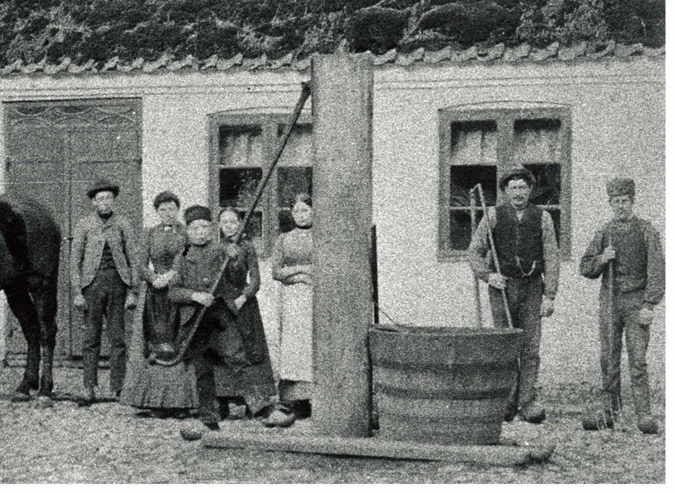 Ved vandpumpen hentede man vand til husholdningen; til madlavning, tøjvask, øl brygning osv. Alle på gården drak af kruset både børn og voksne. Hverdagsøllet var det tynde øl. Vandet fra brønden var nemlig ikke nødvendigvis rent. Vandet blev kogt i forbindelse med øl brygningen, og øl var derfor sikkert at drikke. Vandpumpen er en rekonstruktion. Den står på det sted, hvor gårdens oprindelige vandpumpen har været. Tud, og pumpesystem er det orginale.